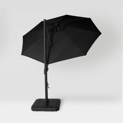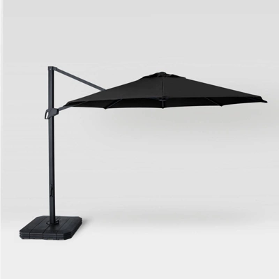 This 11-Foot x 11-Foot Round Offset Outdoor Patio Cantilever Umbrella with Black Pole from Threshold™ offers you plenty of shade while keeping the pole and base out of your way. Made with fade-resistant fabric in a solid hue, this patio umbrella features an offset canopy and is constructed with a steel frame and a sleek black-finish pole. It’s compatible with cantilever umbrella bases (sold separately) and can be assembled without the use of any tools, and the crank lift makes the canopy easy to open and close.