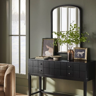 The 11″ x 14″ Female Portrait Framed Wall Art Canvas by Threshold™ designed with Studio McGee adds a graceful aesthetic to your space. This digital print features a portrait of a woman in neutral tones of black, white and browns. The canvas comes with a frame in black and gold, with a saw tooth mount for easy hanging in bedrooms, dining areas, living rooms or galleries. Add visual interest to your room with the lady oil-like portrait from Threshold, designed with Studio McGee.