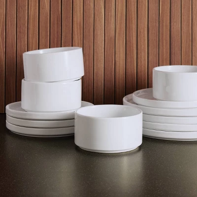 Create an elegant dining table for all occasions with this 12-Piece Stoneware Dinnerware Set from Threshold™. Made with stoneware in white for a stylish look, this 12-piece dinnerware set includes four salad plates, four dinner plates and four cereal bowls that makes a great pick for everyday dining with family or hosting guests during weekend gatherings or holidays. Best of all, each piece is dishwasher and microwave safe, so after-dinner cleanup and reheating leftovers is a breeze.