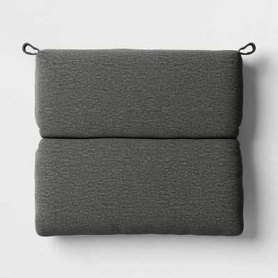 Infuse your outdoor seating space with comfort and style with this Heathered Outdoor Chair Seat Cushion from Threshold™. This outdoor chair seat cushion is made from 100% recycled polyester fabric with fade-resistant properties to help keep it as good as new in your outdoors. Featuring a 4.5-inch thick design with soft filling, it helps maximize outdoor sitting comfort. Best of all, it’s designed with loops at the sides for easily attaching it to the frame of your outdoor chair. Showcasing a heathered finish and a hinged design, it’s sure to add sleek style to your patio, balcony or porch.