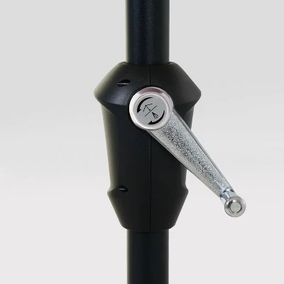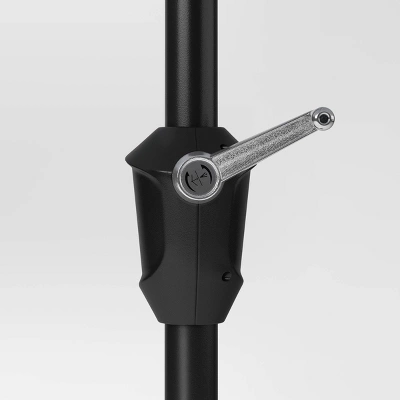 Enjoy outdoor lounging in the shade with this Rectangular Scalloped Outdoor Patio Market Umbrella Linen with Black Pole from Threshold™. This outdoor umbrella features a scalloped design on the edging for a nice decorative look. It comes with a rectangular linen fabric canopy set on rust-resistant black steel frame for lasting outdoor use. Plus, it’s equipped with a crank lift system that makes it easy to raise and lower the canopy, along with a tilt adjustment for selecting the right angle of protection from the sun.