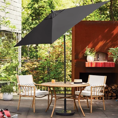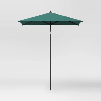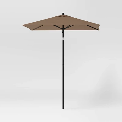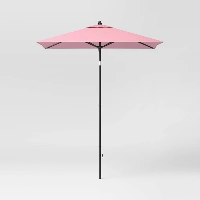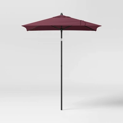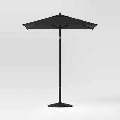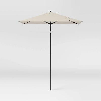 Equip your outdoor space for bright sunny days with this Square Outdoor Patio Market Umbrella with Black Pole from Threshold™. This outdoor umbrella is a must-have addition to your patio, deck, backyard or garden decor. Made of fade-resistant fabric canopy for lasting outdoor use, its solid color makes it easy to coordinate with a range of outdoor settings, and it’s equipped with a push-up lift system that makes it easy to raise and lower the canopy along with push-button tilt for more shading angles.