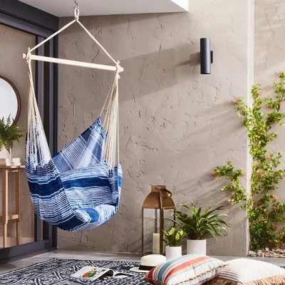 Add some depth and dimension to your outdoor space with the Medallion Outdoor Rug from Threshold™. Decked out in a stylized diamond-medallion motif with floral and dotted highlights in the center and surrounded by a geometric-inspired border in white that pops against the rich navy background, this rectangular area rug freshens up your patio, lawn or garden with rich, ornate appeal.